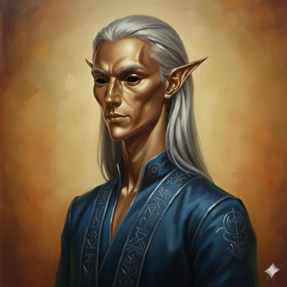 An elf male with brassy-gold skin and long white hair. Softly spoken and wearing an expression of disdain, Malon was stationed at The Isle of Ostrastein to teach inmates the Tenets of Vithimiris as his role as a Commissary, though he only halfheartedly played this role.
